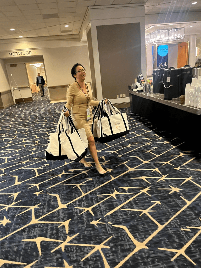 Volunteers arrived a day early for orientation. I was warmly welcomed by Sabrina Milos, the volunteer coordinator, and the rest of the staff. I was pleased to meet the organization’s president, Daniel Mateo, and the elegant Alba Cruz-Hacker, HNBA VIA Fund President. We received thorough training and spent the day preparing swag bags for the event attendees. The volunteer schedule was well-organized, with each person having clear tasks to complete. When we weren’t volunteering, we could attend conferences and meetings.